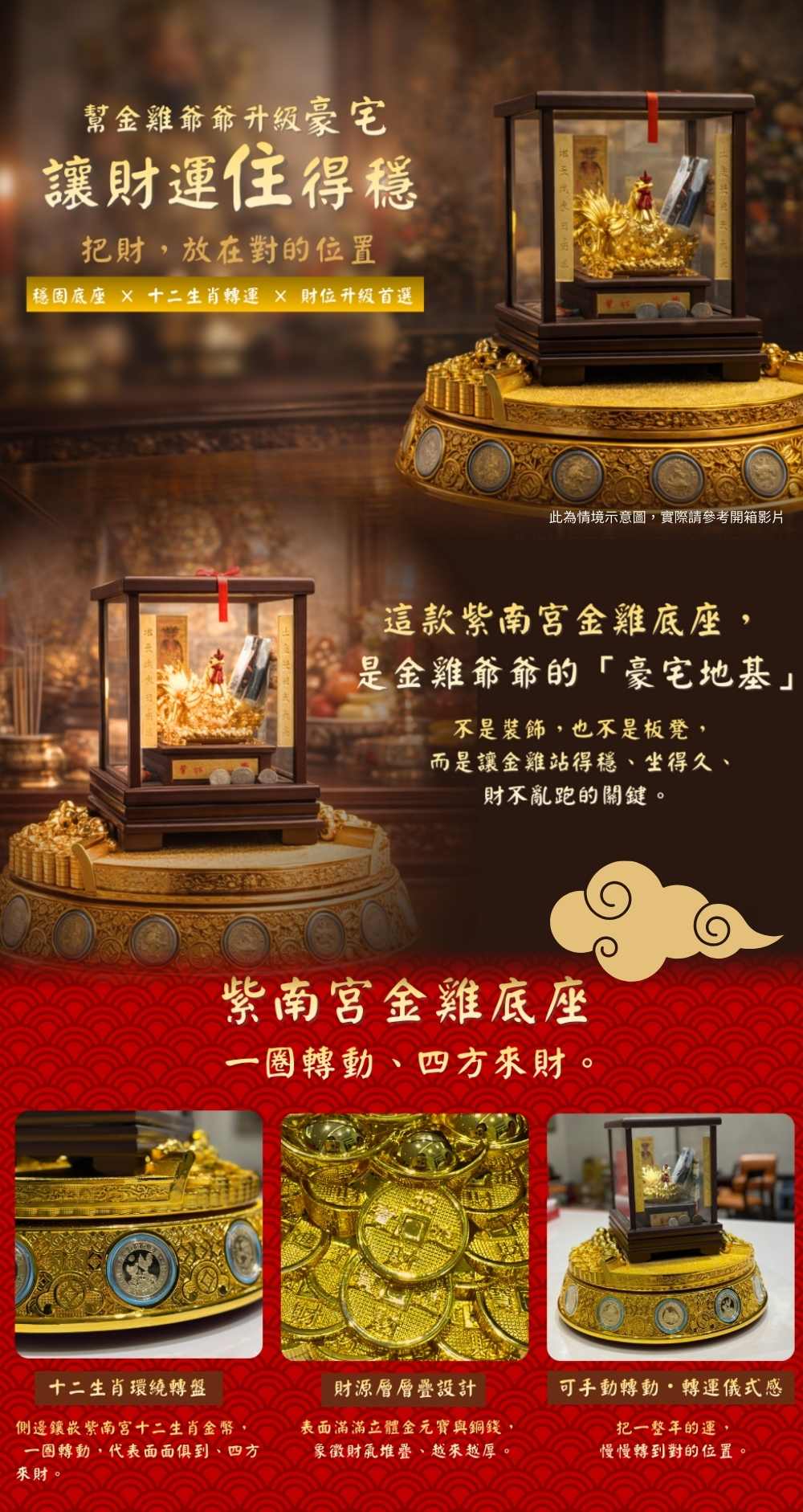 紫南宮金雞發財底座含十二生肖發財錢母送限量紫南宮錢母印泥 (不含金雞)