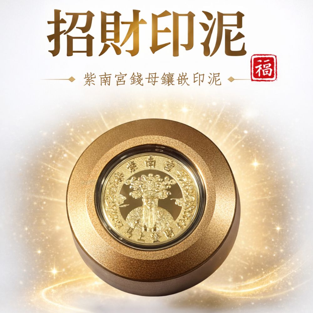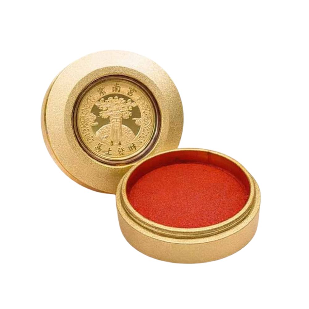 商品名稱:紫南宮錢母嵌入招財印泥 (馬年) 產品組成:紫南宮錢母、正宗萬年紅印泥、高質感金屬印泥盒 內容物主要成份:艾絨、蓖麻油、顏料、香料 內容物顏色:紅 容器材質:鋁合金鍛造材質(AL-6061-t6) 產品尺寸:70mmx25mm 產品總重量:約150g 保存期限:5年 原產地:台灣